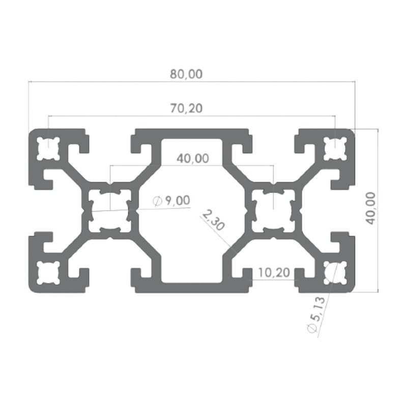 Boyut: 40×80 mm Malzeme: 6063-T6 Alüminyum Ağır Seri Kullanım Alanları: Endüstriyel projeler, ağır yük taşıma